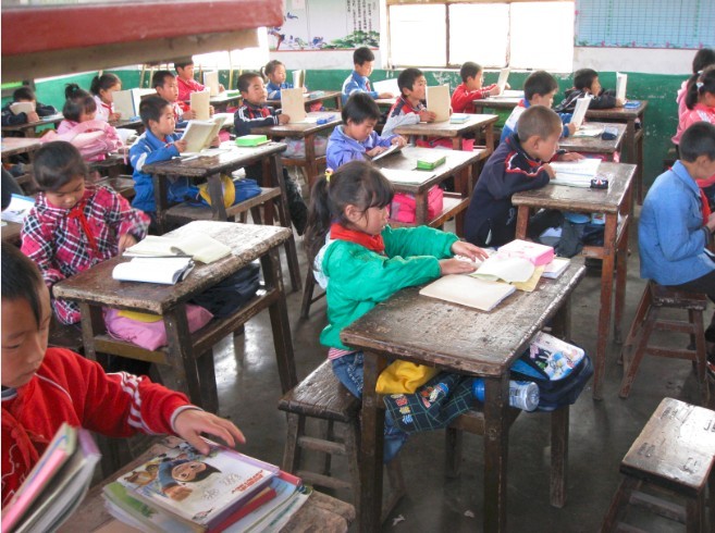 马峡中心小学原有的课桌椅
