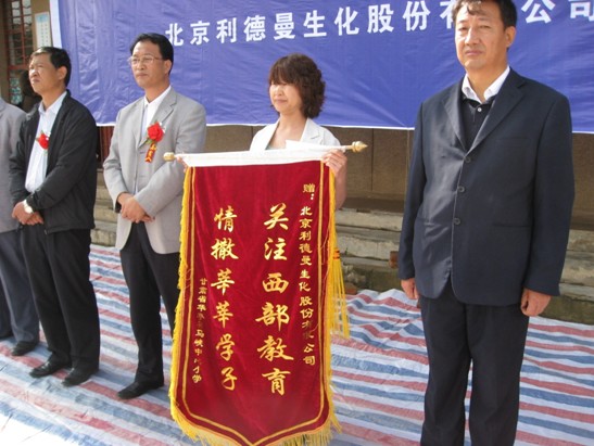 马峡,甘肃—— 2010年9月7日,MK官网向甘肃省平凉市华亭县马峡中心小学无偿捐赠了价值十万元的钢木课桌椅。MK官网副总经理张雅丽、华亭县县委常委、副县长徐德才、华亭县教育局局长陶玉宏等出席了捐赠仪式。马峡中心小学校长杜安平向MK(中国)一站式服务官网公司赠送了锦旗,表达感激之情。