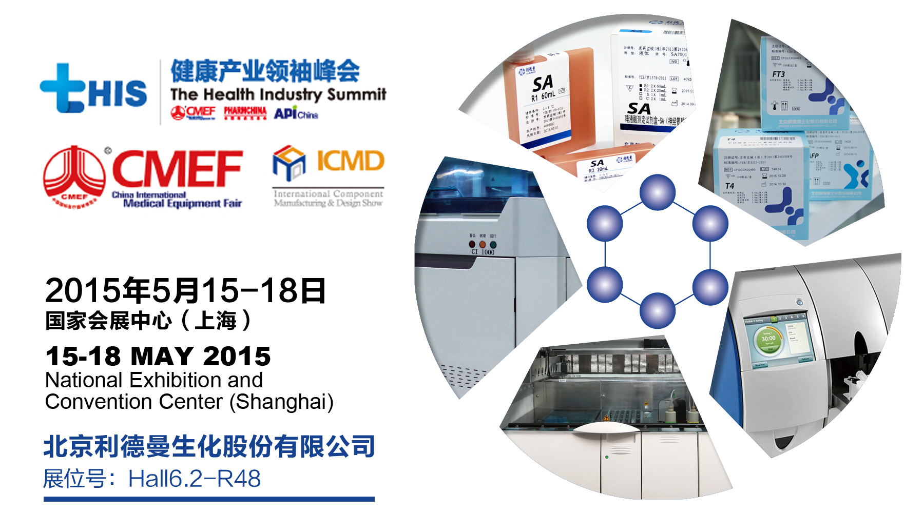 5月15日,MK(中国)一站式服务官网“生物科学之花”将绽放于上海“四叶草”,展位号:Hall6.2 –R48。届时将向观众展示MK(中国)一站式服务官网生化诊断试剂新成员以及系列仪器:CI1000全自动化学发光免疫分析仪、IDS-iSYS全自动生化免疫分析仪、德赛Respons920台式任选型全自动生化分析仪、Enigma® ML全自动化分子检测平台等仪器。更有最新推出的CM4000全自动血凝分析仪首次亮相CMEF,敬请期待。